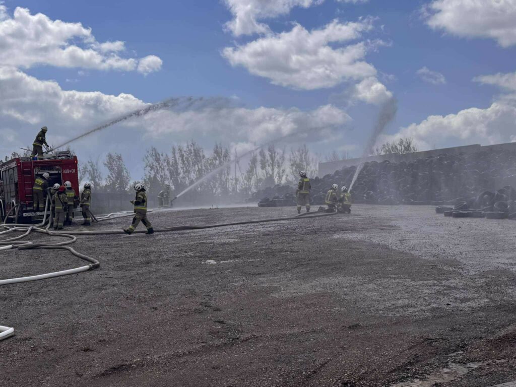 Epizodem ćwiczebnym był pożar składowiska opon, znajdującego się na terenie zakładu. Na symulowany pożar zostały podane 4 prądy wody z działek samochodowych oraz przenośnych. Po zakończeniu części praktycznej nastąpiło podsumowanie realizacji założenia na sali szkoleniowej.